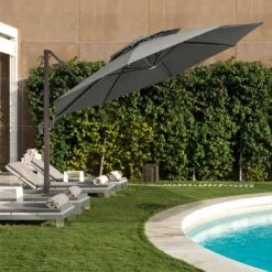 11 Ft. X 11 Ft. Square Two-Tier Top Rotation Outdoor Cantilever Patio Umbrella With Cover In Yellow