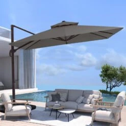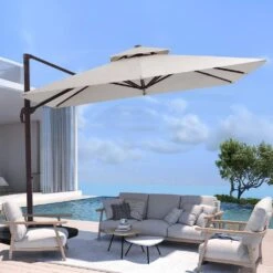 12 Ft. X 12 Ft. Aluminum Cantilever Patio Umbrella With Weighted Base In Beige