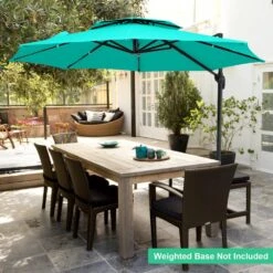 13 Ft. Patio Round Umbrella 360-Degree Rotation Cantilever Umbrella With Cover In Peacock Blue