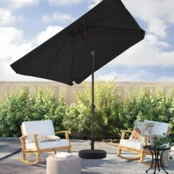6.5 Ft X 10 Ft. Rectangular Steel Market Crank And Tilt Outdoor Patio Umbrella In Black