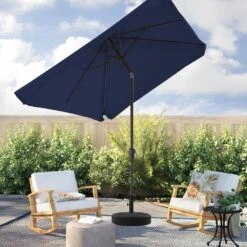 6.5 Ft X 10 Ft. Rectangular Steel Market Crank And Tilt Outdoor Patio Umbrella In Navy
