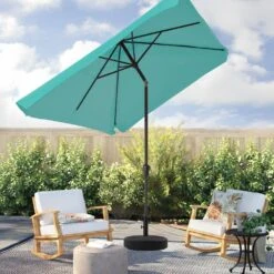 6.5 Ft X 10 Ft. Rectangular Steel Market Crank And Tilt Outdoor Patio Umbrella In Peacock Blue