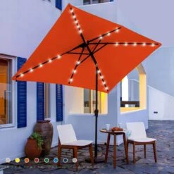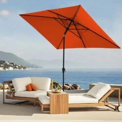 6.5 Ft. X 10 Ft. Steel Market Tilt Patio Umbrella In Red And White