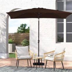 6.5 X 10 Ft. Market Solar LED Lighted Tilt Patio Umbrella Rectangular Outdoor Umbrella In Brown