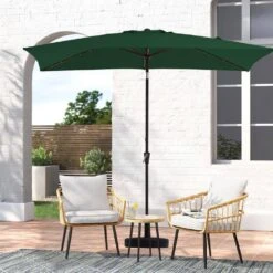 6.5 X 10 Ft. Market Solar LED Lighted Tilt Patio Umbrella Rectangular Outdoor Umbrella In Dark Green