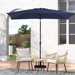 6.5 X 10 Ft. Market Solar LED Lighted Tilt Patio Umbrella Rectangular Outdoor Umbrella In Navy