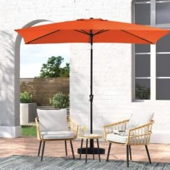 6.5 X 10 Ft. Market Solar LED Lighted Tilt Patio Umbrella Rectangular Outdoor Umbrella In Pumpkin