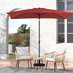 6.5 X 10 Ft. Market Solar LED Lighted Tilt Patio Umbrella Rectangular Outdoor Umbrella In Red