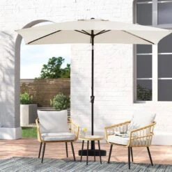 6.5 X 10 Ft. Market Solar LED Lighted Tilt Patio Umbrella Rectangular Outdoor Umbrella In Off-White