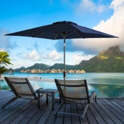 7.5ft Steel Outdoor Patio Market Umbrella With Tilt Crank In Navy