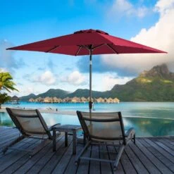 7.5ft Steel Outdoor Patio Market Umbrella With Tilt Crank In Red