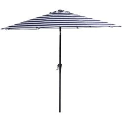 7.5ft Steel Outdoor Patio Market Umbrella With Tilt Crank In Blue And White Stripes
