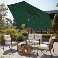 7.5ft Steel Outdoor Patio Market Umbrella With Tilt Crank In Green