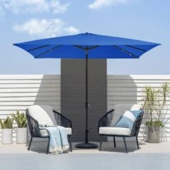 8 Ft X 10 Ft. Rectangular Steel Market Crank And Tilt Outdoor Patio Umbrella In Peacock Blue
