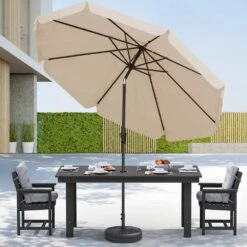 9 Ft. Steel Market Crank And Tilt Outdoor Patio Umbrella In Beige