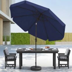 9 Ft. Steel Market Crank And Tilt Outdoor Patio Umbrella In Navy