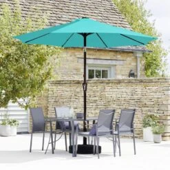 10 Ft. Market Solar LED Lighted Tilt Patio Umbrella Outdoor Steel Umbrella In Peacock Blue