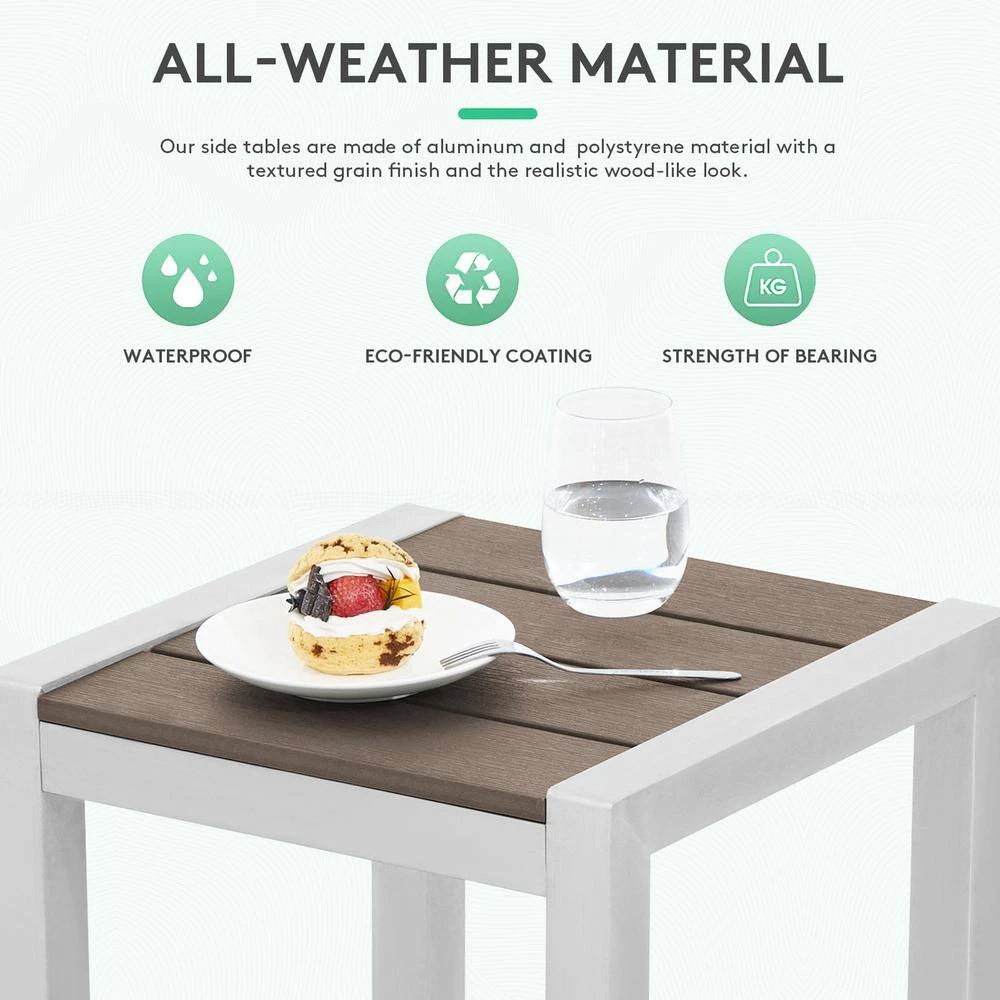 Square Brown Aluminum 15.74 In. W X 15.74 In. D X 13.77 In. H Outdoor Side Table