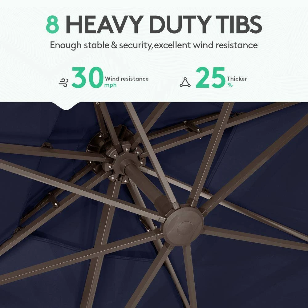 SunShade Deluxe 11 Ft. Square Cantilever Umbrella Heavy-Duty 360° Rotation Patio Umbrella In Navy