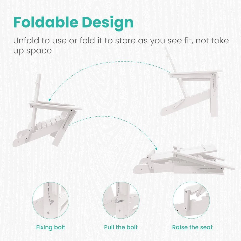 - Weather-resistant and fade-proof: adirondack chair made of HDPE material has the characteristics of waterproof, mildew, and Sun protection, so you don’t have to worry about using it in rainy weather or scorching Sun