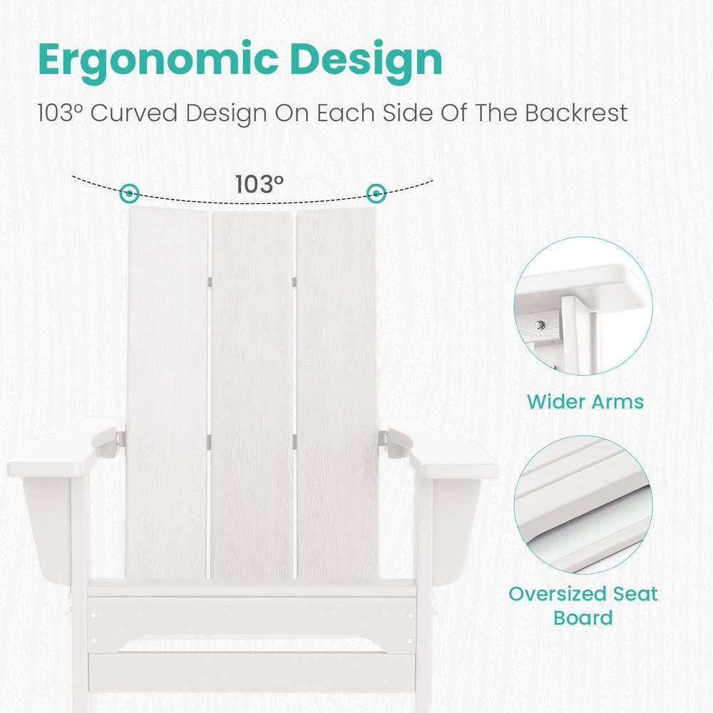 - Modern back: a contemporary take on the traditional adirondack chair, our flat -straight lines cut backrest design allows you to relax your cervical spine to the maximum extent to relieve the day’s fatigue