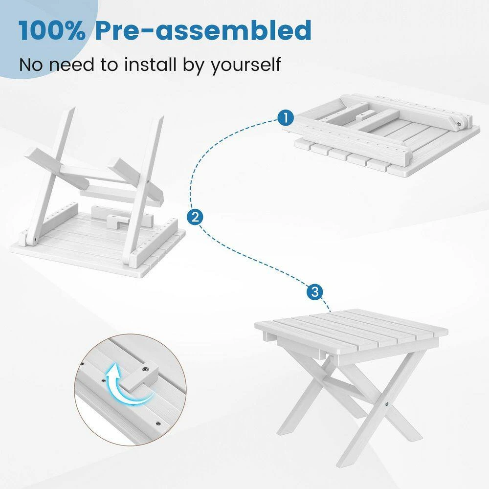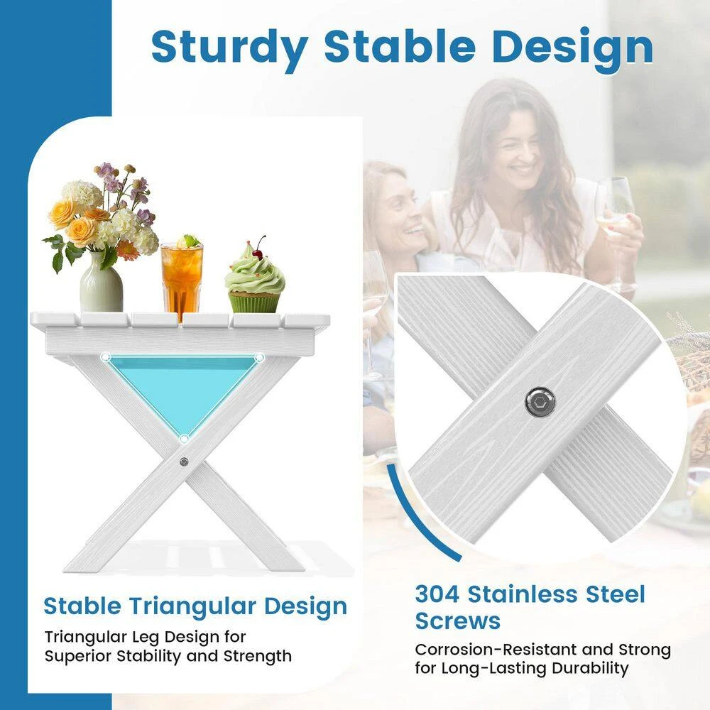 White HDPE Plastic Portable Patio End Table Folding Outdoor Coffee Table